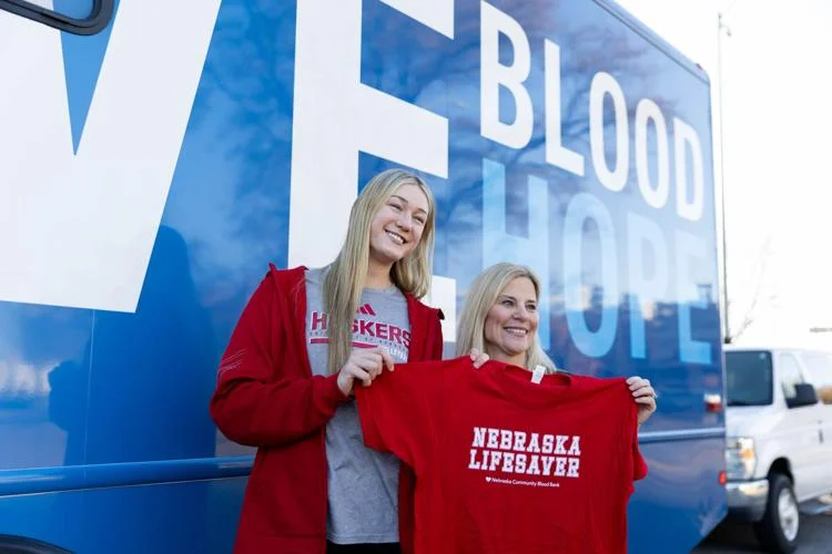 In an article featured in The Daily Nebraskan, Andi Jackson, Nebraska volleyball middle blocker, was interviewed at a Nebraska Community Blood Bank (NCBB) mobile drive. Andi discusses the competitive spirit at the University of Nebraska and her confidence in the University’s support system to show up and push for a victory.